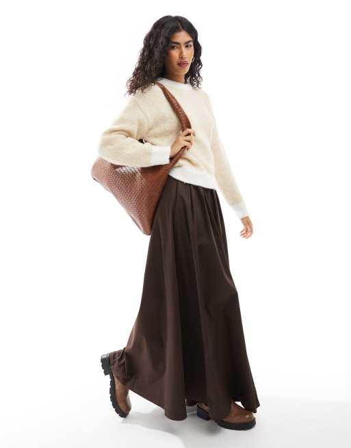 ASOS DESIGN - Gonna lunga in cotone pesante color cioccolato