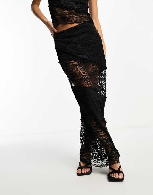 ASOS DESIGN - Gonna lunga in pizzo nero testurizzato combinato in coordinato
