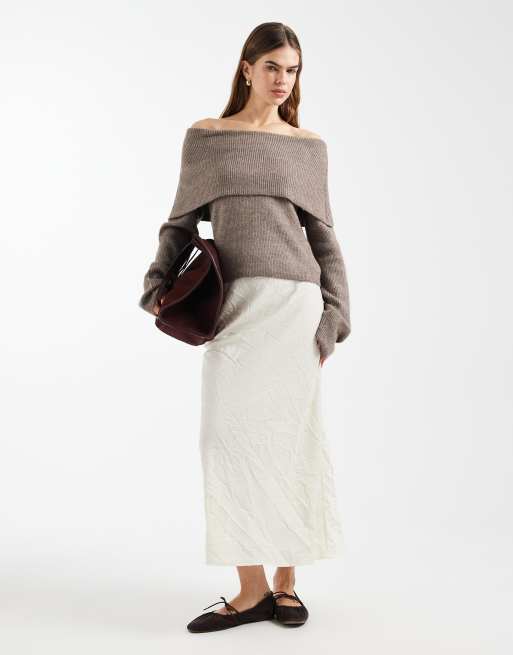 ASOS DESIGN - Gonna lunga in raso stropicciato bianco inverno