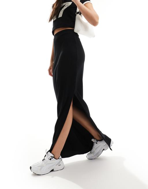 ASOS DESIGN - Gonna lunga nera a coste con spacco laterale