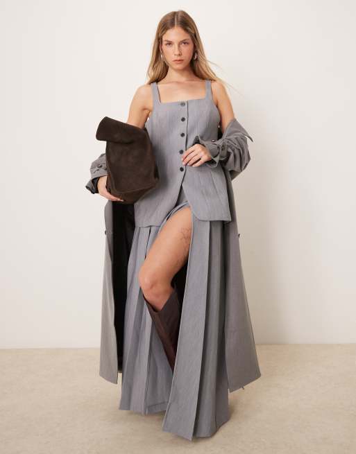 ASOS DESIGN - Gonna lunga sartoriale a pieghe grigia in coordinato
