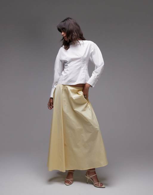 ASOS DESIGN - Gonna lunga voluminosa a ruota in popeline color latticello