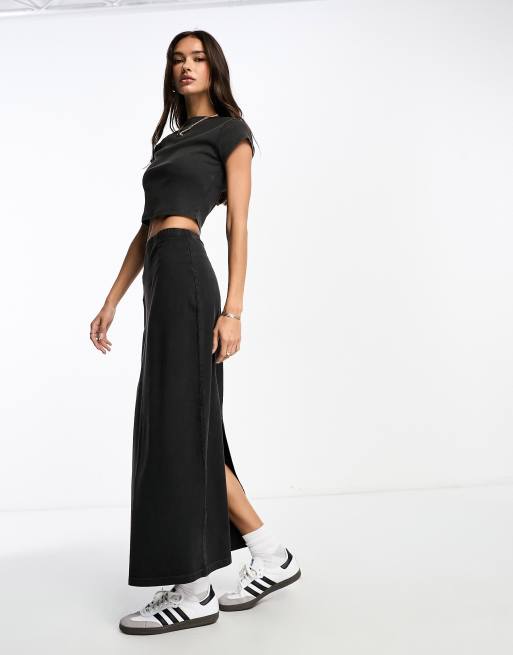 ASOS DESIGN - Gonna midi a colonna nero slavato in coordinato
