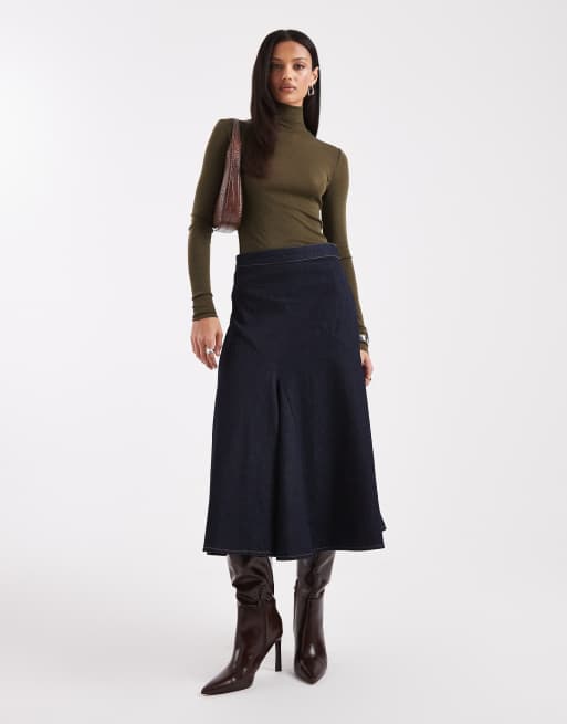 ASOS DESIGN - Gonna midi color indaco con godet sagomato