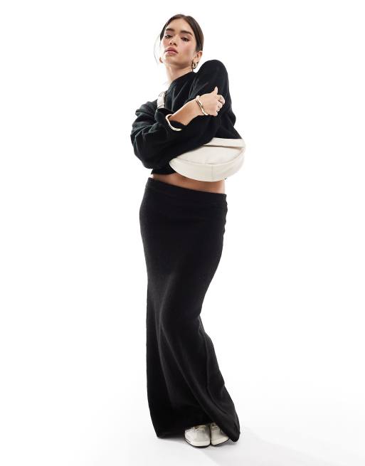ASOS DESIGN - Gonna midi in maglia nera in coordinato
