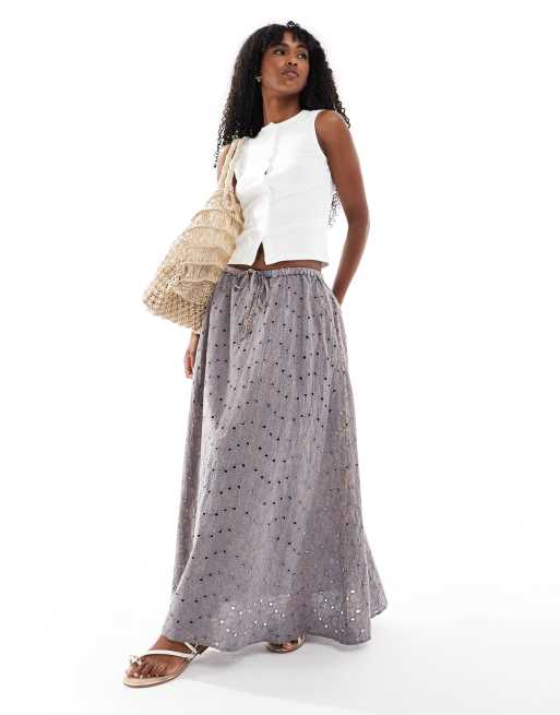 ASOS DESIGN - Gonna midi svasata in pizzo sangallo a fiori lavaggio acido