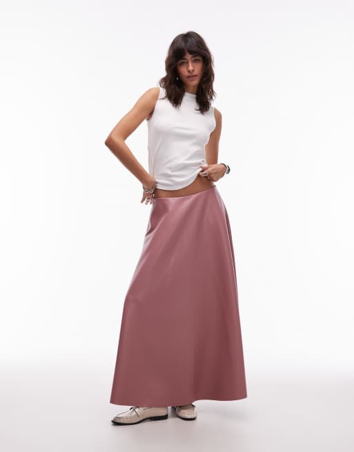ASOS DESIGN - Gonna rosa a ruota in similpelle PU