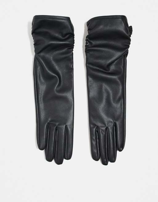 ASOS DESIGN - Guanti lunghi in pelle sintetica con arricciature