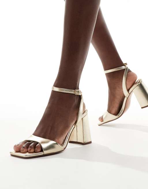 ASOS DESIGN - Hotel - Sandali con tacco largo oro effetto nudo
