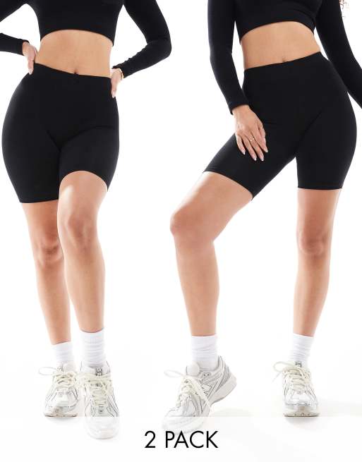 ASOS DESIGN Hourglass - Confezione da 2 leggings corti basic neri