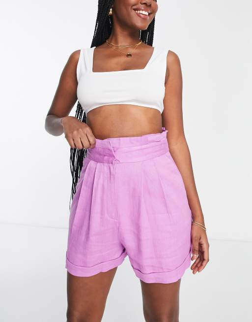 ASOS DESIGN Hourglass - Pantaloncini in lino rosa a vita alta