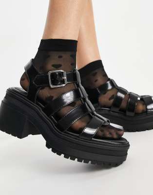 ASOS DESIGN - Hugo - Sandali neri con suola spessa e tacco medio