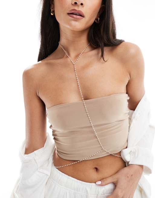 ASOS DESIGN - Imbracatura dorata con catena di perle sintetiche