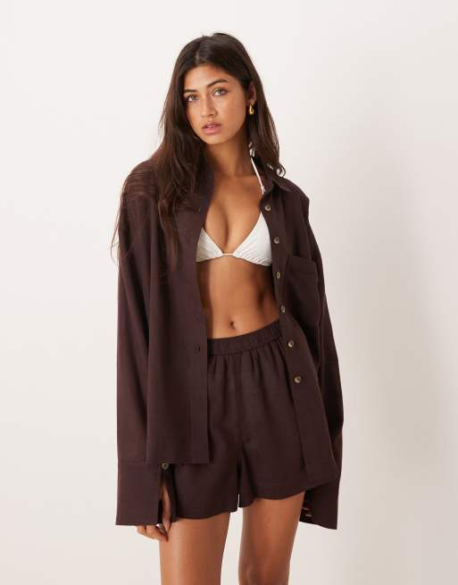 ASOS DESIGN - Ipanema - Camicia da spiaggia in misto lino trasparente color cioccolato