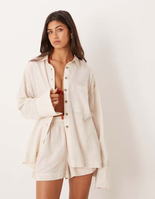 ASOS DESIGN - Ipanema - Camicia da spiaggia in misto lino trasparente neutra