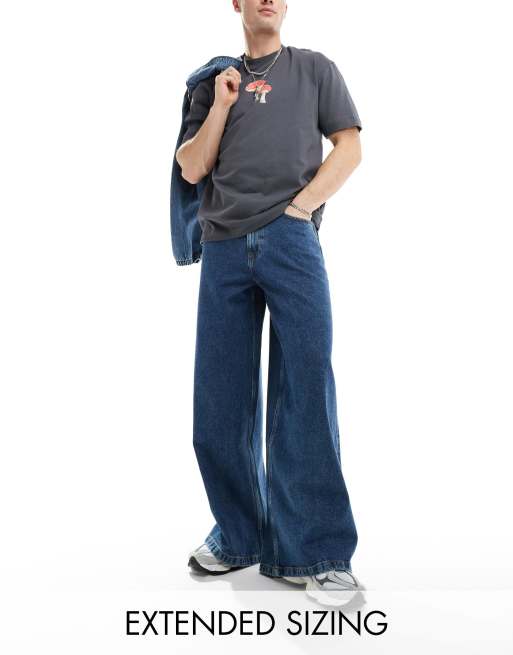 ASOS DESIGN - Jeans a fondo super ampio blu lavaggio medio