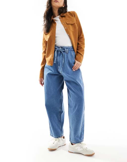 ASOS DESIGN - Jeans a palloncino blu medio con cintura annodata