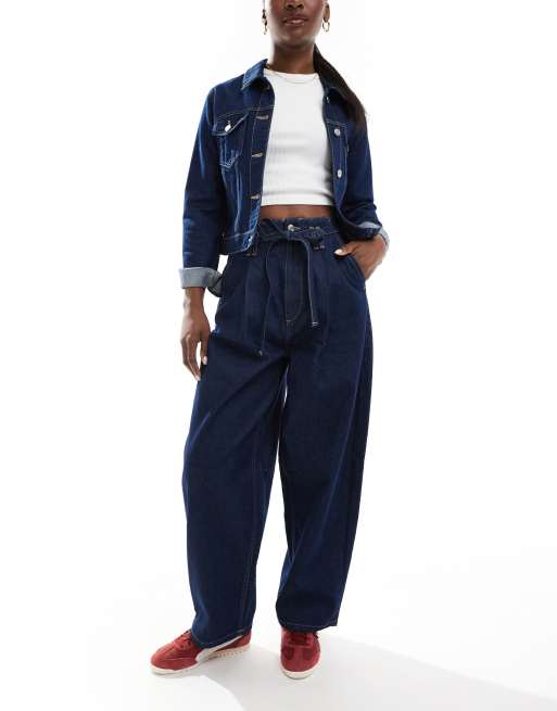 ASOS DESIGN - Jeans a palloncino lavaggio risciacquato con cintura annodata