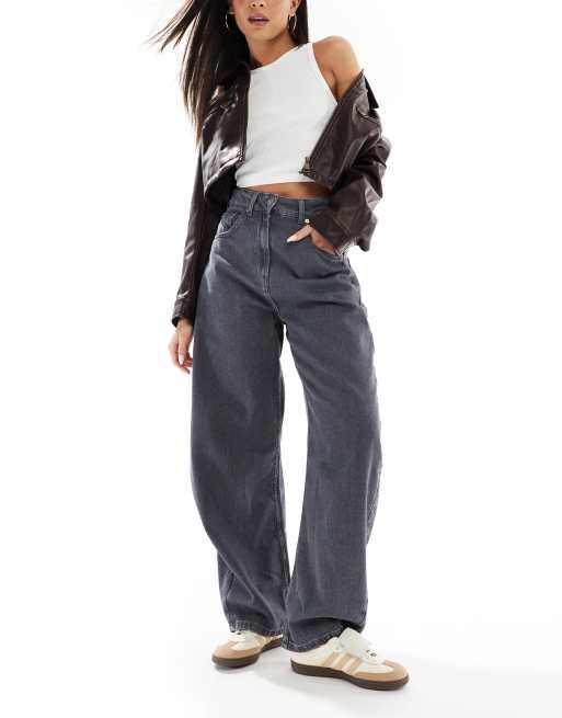 ASOS DESIGN - Jeans a vita alta grigi con gamba a cilindro