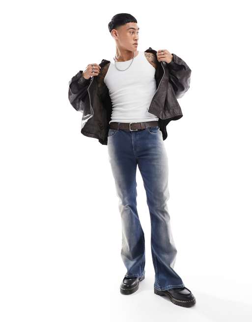 ASOS DESIGN - Jeans a zampa blu slavato tinto