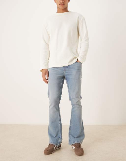 ASOS DESIGN - Jeans a zampa elasticizzato lavaggio blu medio