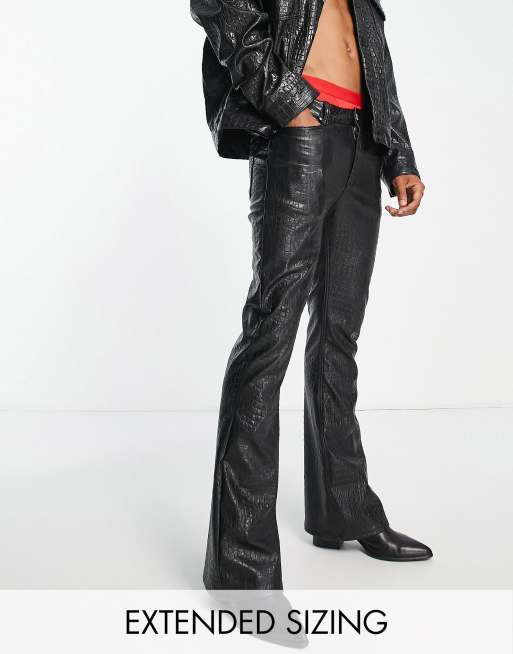 ASOS DESIGN - Jeans a zampa in pelle sintetica nero effetto coccodrillo in coordinato