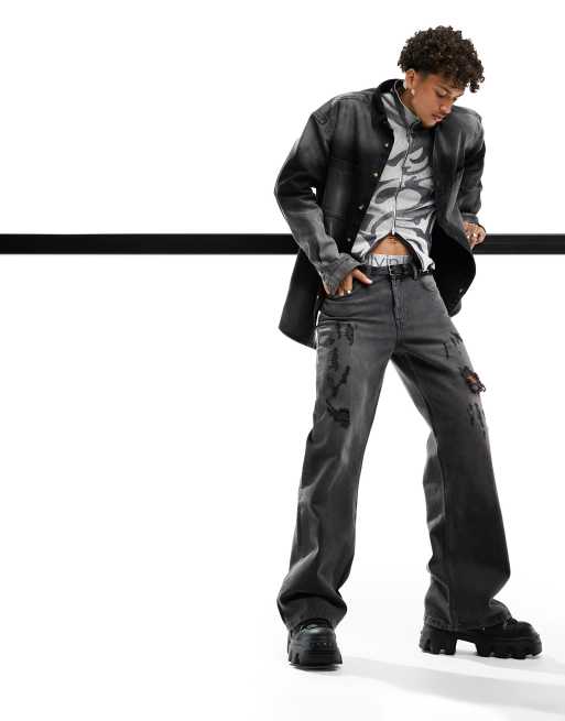 ASOS DESIGN - Jeans a zampa larghi nero slavato con strappi