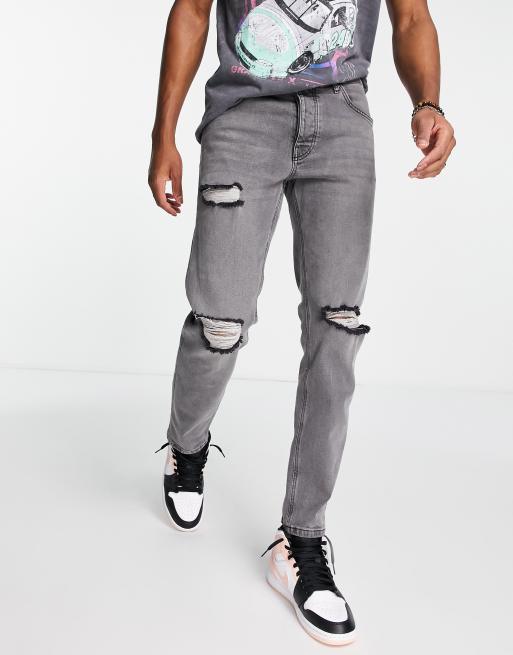 ASOS DESIGN - Jeans affusolati con strappi sulle ginocchia nero slavato