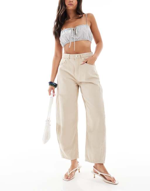 ASOS DESIGN - Jeans alla caviglia bombati beige