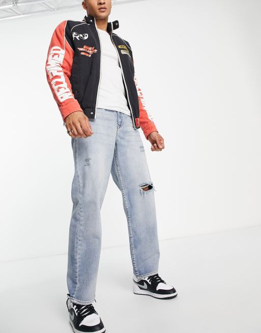 ASOS DESIGN - Jeans ampi blu lavaggio chiaro con strappi