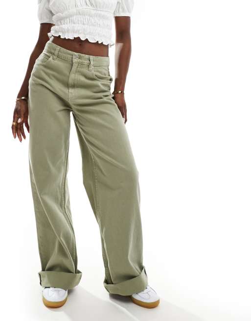 ASOS DESIGN - Jeans ampi con risvolto profondo verde salvia
