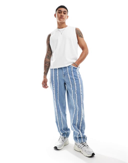 ASOS DESIGN - Jeans ampi lavaggio chiaro blu con frange