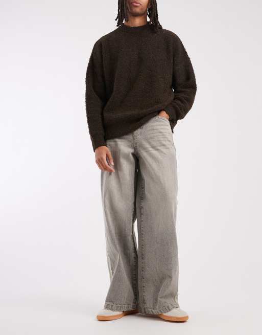 ASOS DESIGN - Jeans ampi lavaggio grigio con pannelli laterali