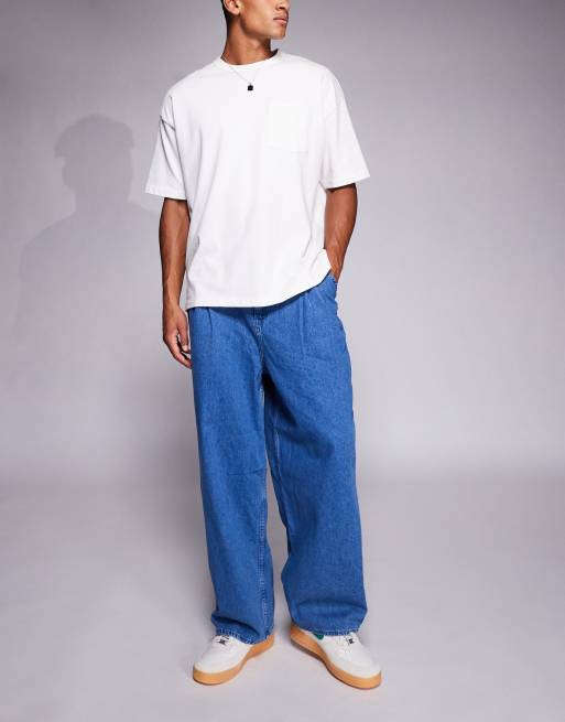 ASOS DESIGN - Jeans ampi oversize blu lavaggio medio con cinturini laterali