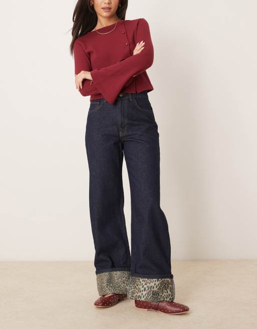 ASOS DESIGN - Jeans color indaco con stampa leopardata sul risvolto
