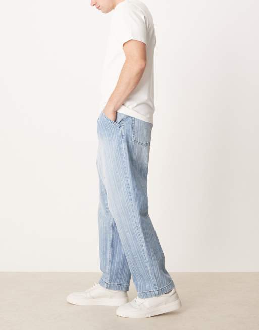 ASOS DESIGN - Jeans comodi affusolati lavaggio blu chiaro con stampa a righe