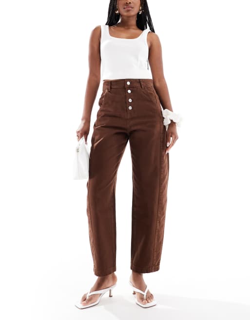 ASOS DESIGN - Jeans cropped cilindrici con bottoni marroni
