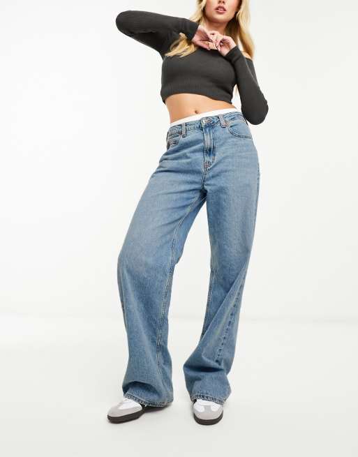 ASOS DESIGN - Jeans dad fit blu medio a fondo ampio