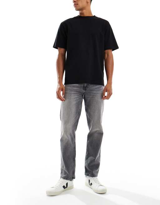 ASOS DESIGN - Jeans dritti elasticizzati lavaggio grigio