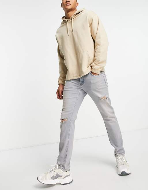 ASOS DESIGN - Jeans slim elasticizzati blu sfumato con strappi