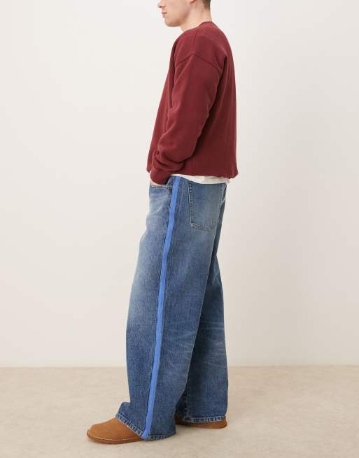 ASOS DESIGN - Jeans super ampi lavaggio blu medio con riga laterale