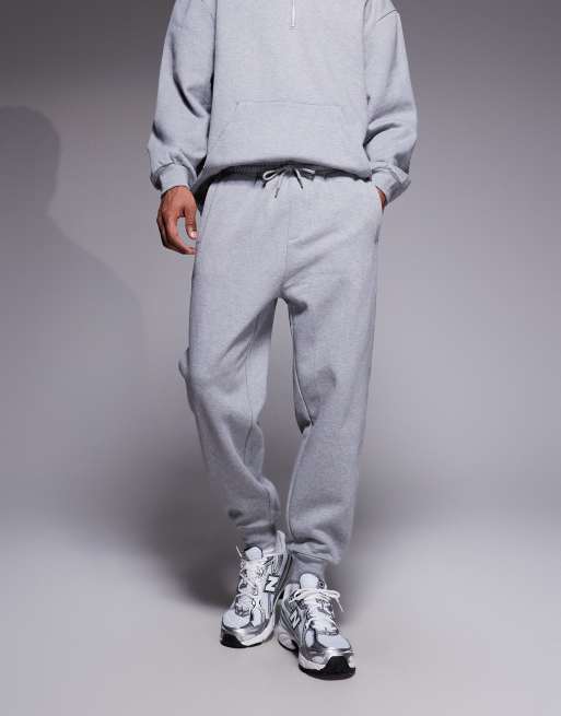 ASOS DESIGN - Joggers affusolati color grigio mélange con fondo elasticizzato a coste