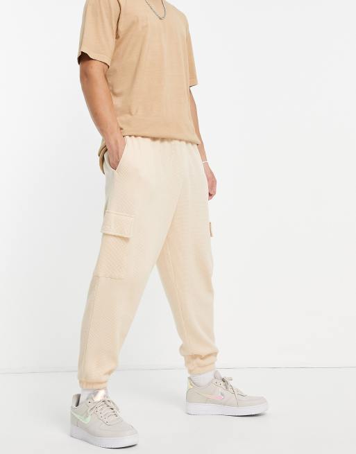 ASOS DESIGN - Joggers cargo a fondo ampio in piqué beige in coordinato