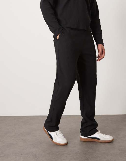 ASOS DESIGN - Joggers dritti nero slavato a coste in coordinato