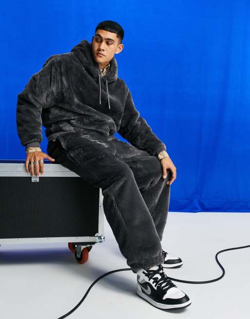 ASOS DESIGN - Joggers oversize in pelliccia sintetica neri in coordinato