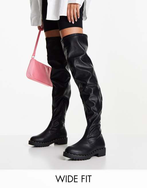 ASOS DESIGN - Kally - Stivali sopra al ginocchio a pianta larga neri