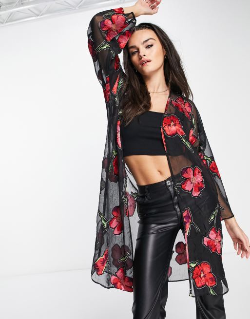 ASOS DESIGN - Kimono in tessuto premium dévoré a fiori