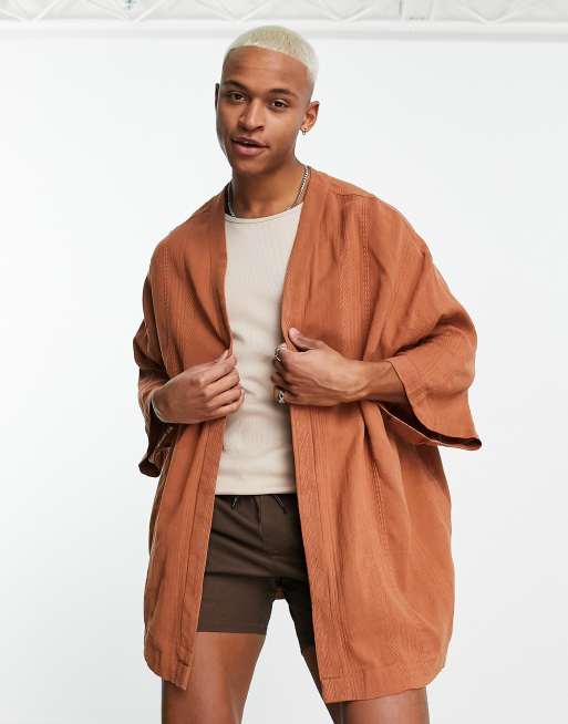 ASOS DESIGN - Kimono testurizzato marrone chiaro