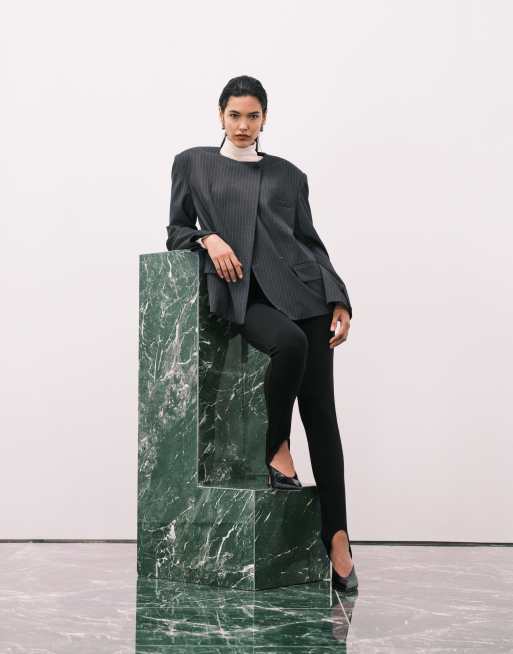 ASOS DESIGN - Leggings neri in tessuto interlock con staffe