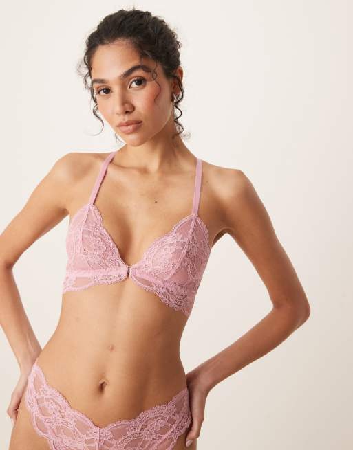 ASOS DESIGN - Lola - Reggiseno a triangolo in pizzo rosa confetto allacciato sul davanti